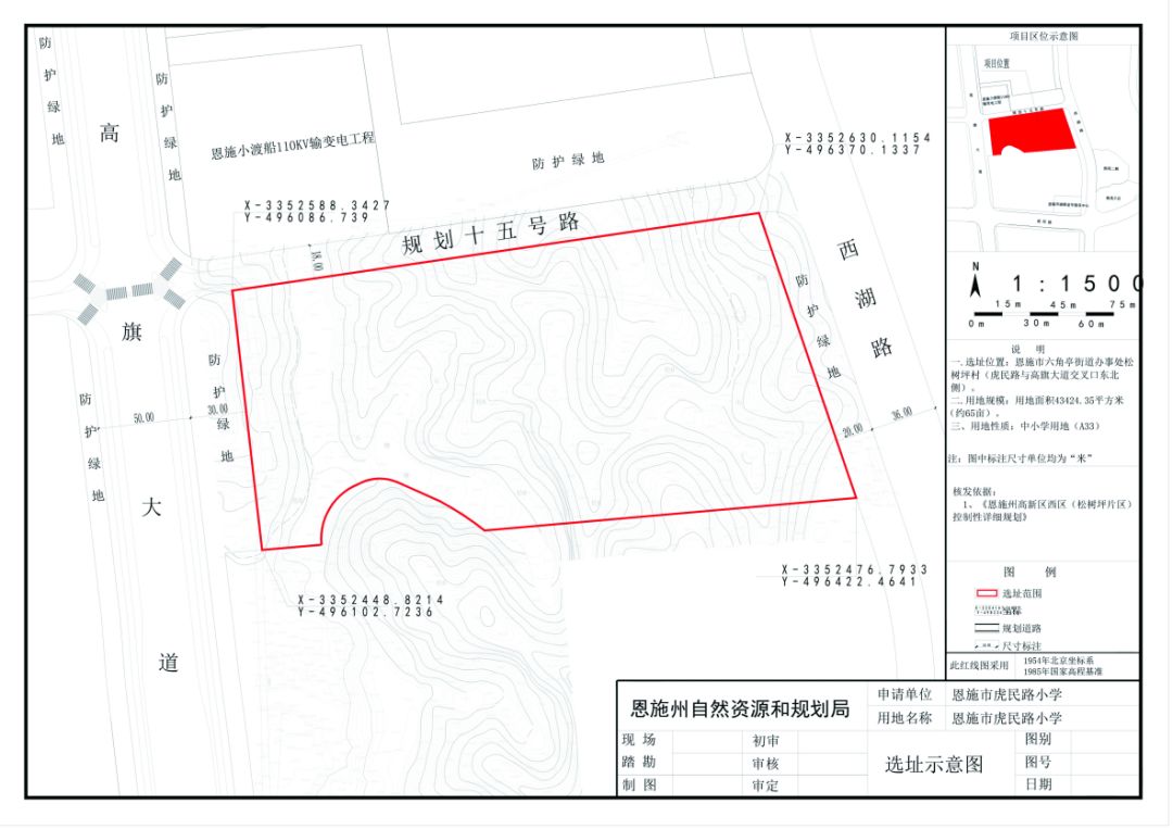 恩施市虎民路小学项目位于六角亭街道办事处松树坪村(虎民路与高旗大道交叉口东北侧)