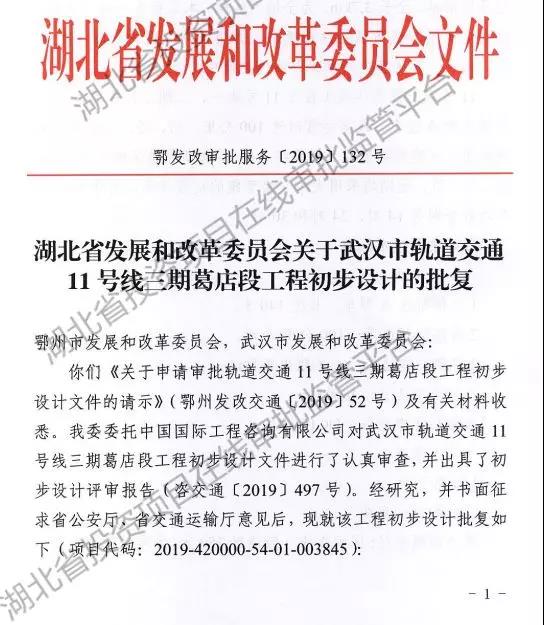 5月27日,湖北省发改委正式批复葛店地铁工程初步设计(鄂发改审批服务[2019]132号)。长江云记者从省发改委和鄂州发改委的渠道了解到以下3点重要信息。