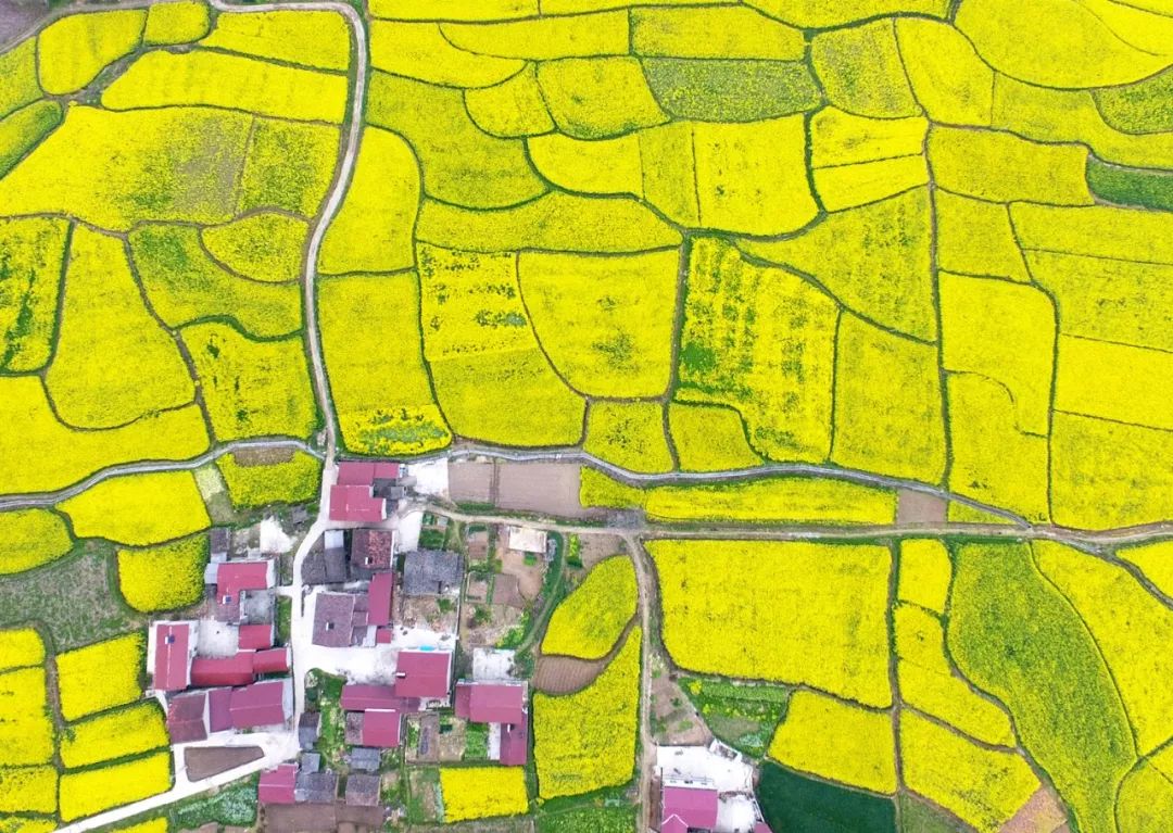 湖北省远安县一处油菜花田(2017年3月18日无人机拍摄)。新华社记者肖艺九 摄