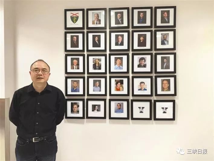 ▲站在实验室教授墙前,张永力更加坚定探索未知科学的信心。