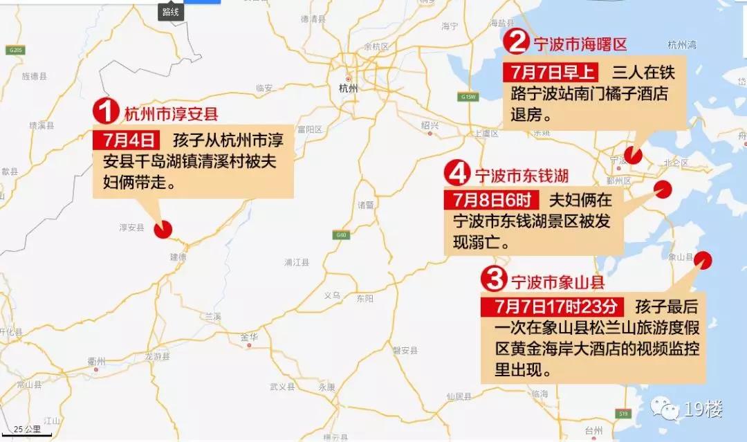 7月6日,微信定位显示3人在温州,当天3人入住宁波火车南站附近酒店。