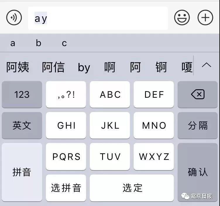 网友把输入法改成了九宫格,点28跳出来的是“不”,51跳出来的是“了”,64跳出来的是“你”,68跳出来的是“女”,但29跳出来的第一行却是“阿姨”。