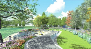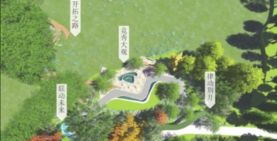 荆州园博园荆州开发区展园项目负责人杨光培:主要展现了开发区园开放,积极,大气的印象。地上是流线型的电路板铺装,通向后面的园区。到时候最外面的位置会有一个开发区的二维码的一个标识,游客进行互动,讲解开发区园的一些文化内涵和每个景点参与的方法。