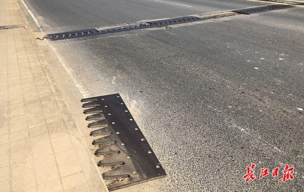 桥面接缝有三块钢板脱落。记者杨荣峰摄