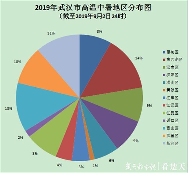 同时,从地区分布来看,中暑病例最多的区是东西湖区,为81例,占全市14%;中暑病例最少的区是黄陂区,为7例,占全市1%。