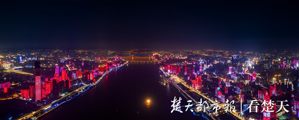 今晚,伴随着《我爱你中国》的背景音乐,两江四岸披上红色璀璨灯光,象征着五星红旗的图案飘扬在楼宇之上。武汉市民秦墨激动落泪:“内心的民族自豪感油然而生,我为中国、为湖北、为武汉自豪!”