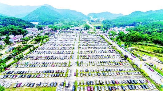 图为:昨日上午10时许,黄陂木兰景区达到游客量极限,停车场一位难求