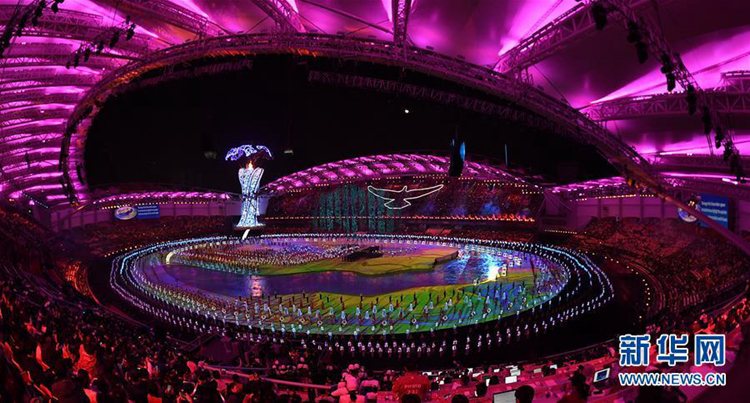 10月18日,第七届世界军人运动会开幕式在武汉体育中心举行。这是开幕式现场(10月18日摄)。新华社记者程敏摄
