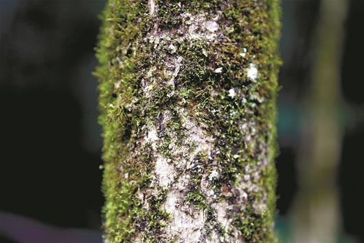景区执行经理黄兵带着记者沿小溪前行,他指着溪边山坡上的一些小树说,这些都是金丝楠木。记者看到它们的直径有碗口粗,笔直挺拔,但没什么奇特之处。黄兵解释,金丝楠木最显著的两个特点,一是皮上有豹纹,二是树干上长满青苔。