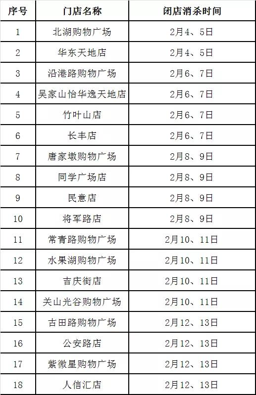 为保障门店安全卫生,家乐福将于2月6日-8日为全市8家门店轮流闭店消毒,