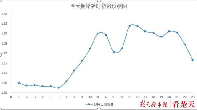 进出城通道:预计在5月4日部分外出市民会提前返程,15:00-20:00车流量增大,部分高速公路收费站附近道路和国省道可能出现排队慢行现象,预计S15汉蔡高速收费站、S8关豹高速武东收费站、S7武鄂高速龚家岭收费站、G4京港澳高速武汉西收费站、S1岱黄高速府河收费站交通压力将提升。