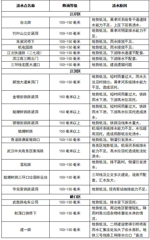 尽管如此,但气候、地势等客观条件未变,绝大多数老旧管网坡度小、流速慢、易沉积、排不赢等基本特征也未发生本质变化,受其影响,武汉市中心城区(含东西湖区)仍有59处易渍水点。主要原因有三个方面。