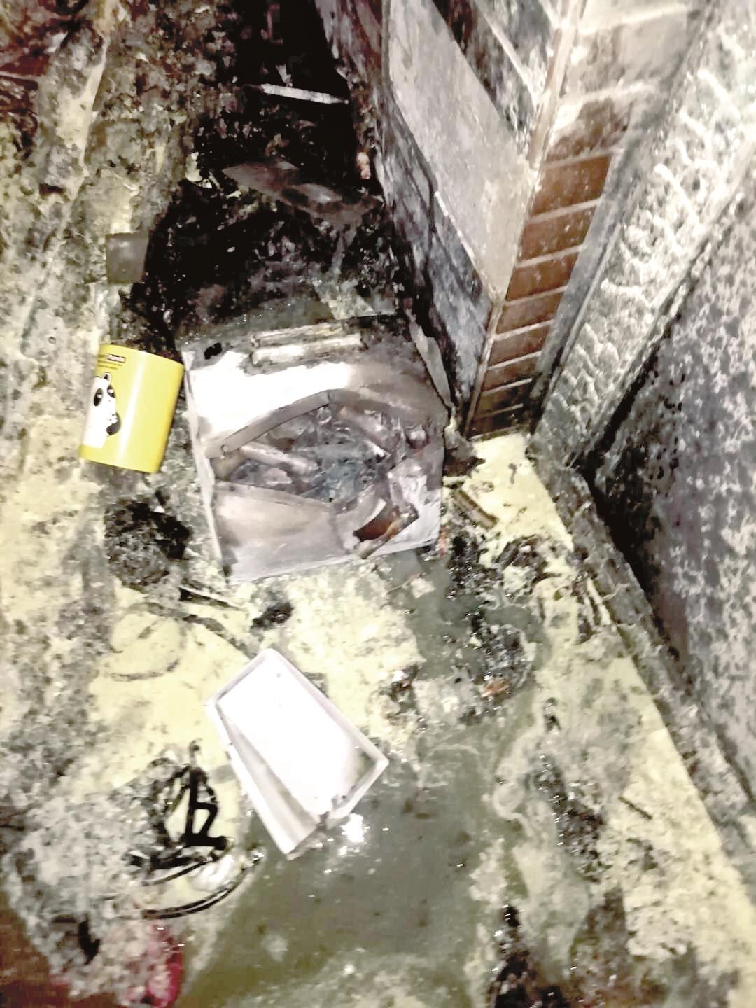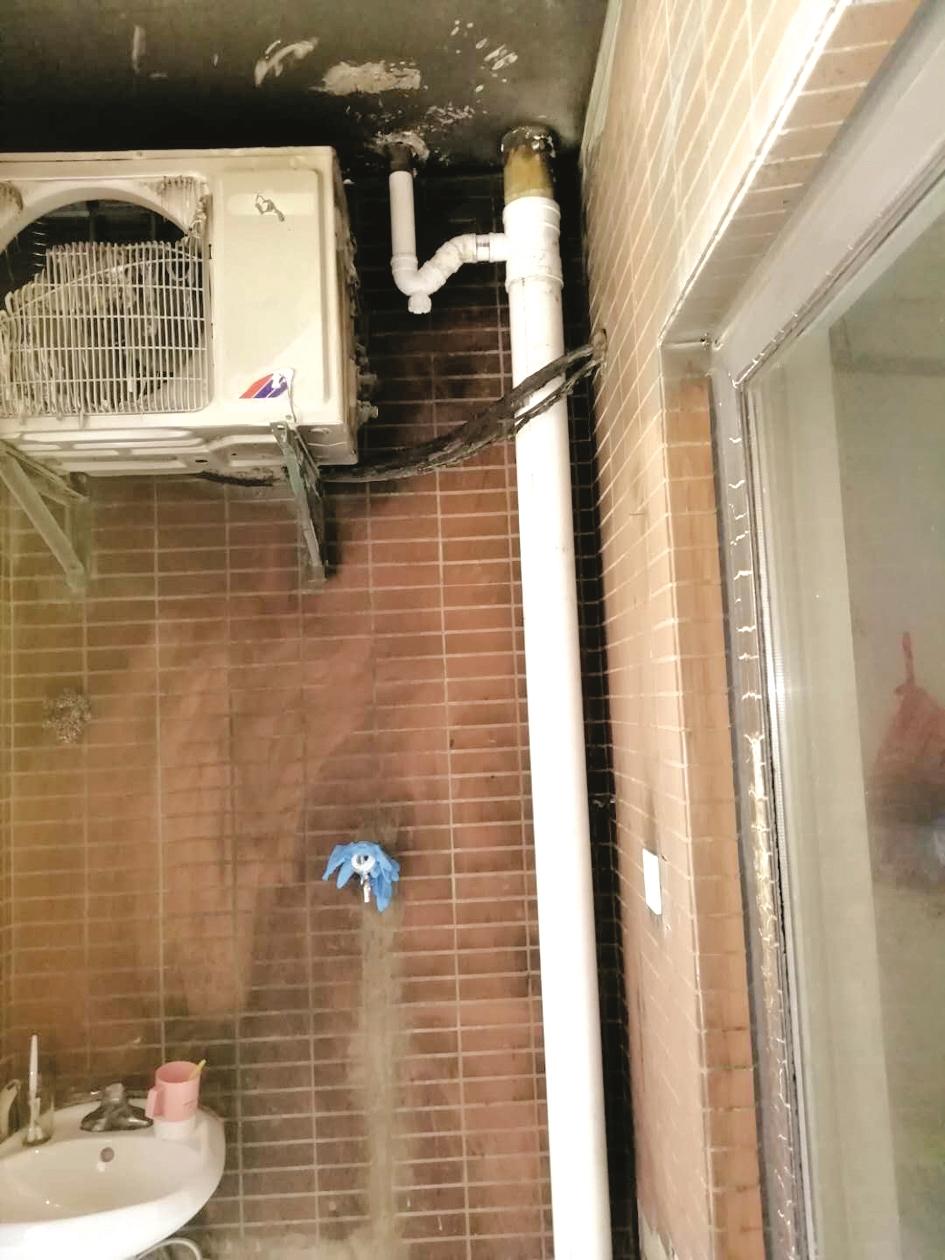 记者看到,起火的阳台墙壁、洗手池有明显的烟熏痕迹,阳台靠近卧室的角落的蓄电池有明显的过火痕迹,该角落的落水管以及靠近阳台玻璃门的边框受损,安装在阳台的空调室外机风扇被烧。“还好室友们扑救及时,否则后果不堪设想!”闫先生心有余悸地说。