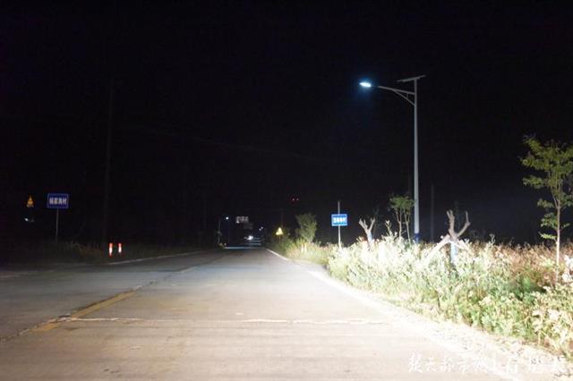 夜间,省道平交路口的照明灯、警示桩、提示牌