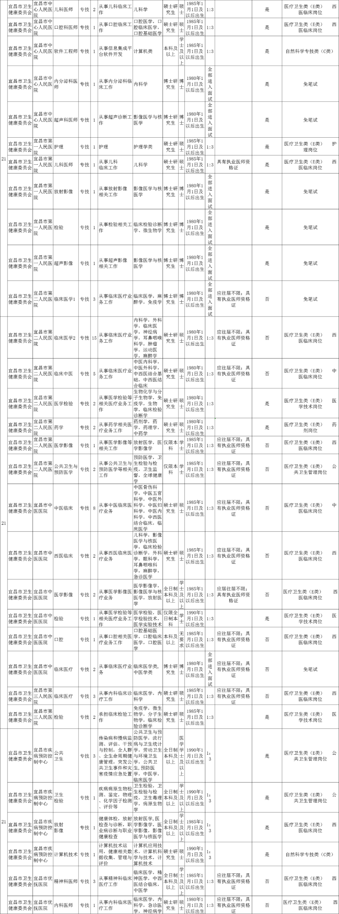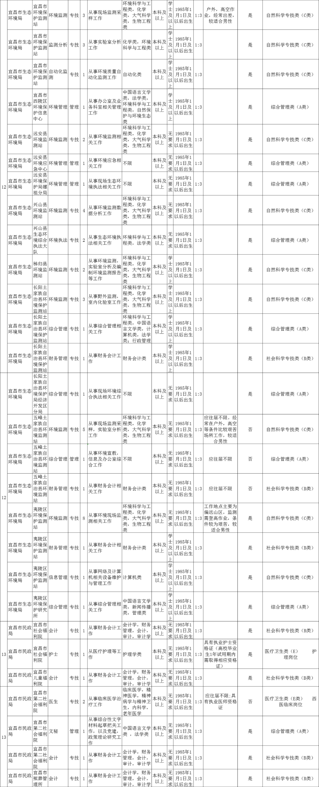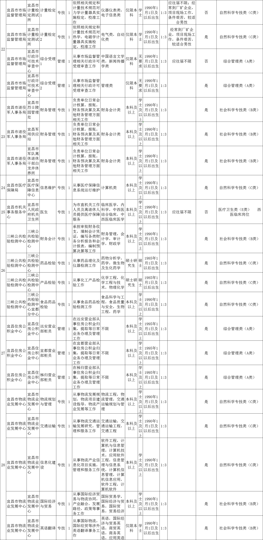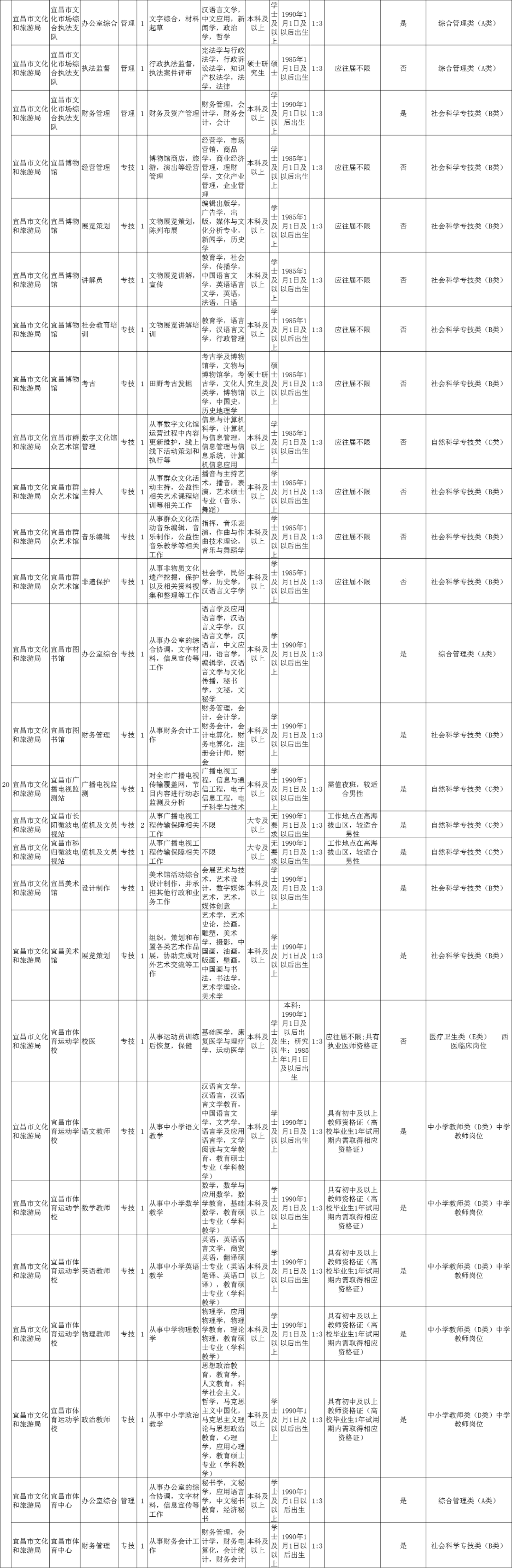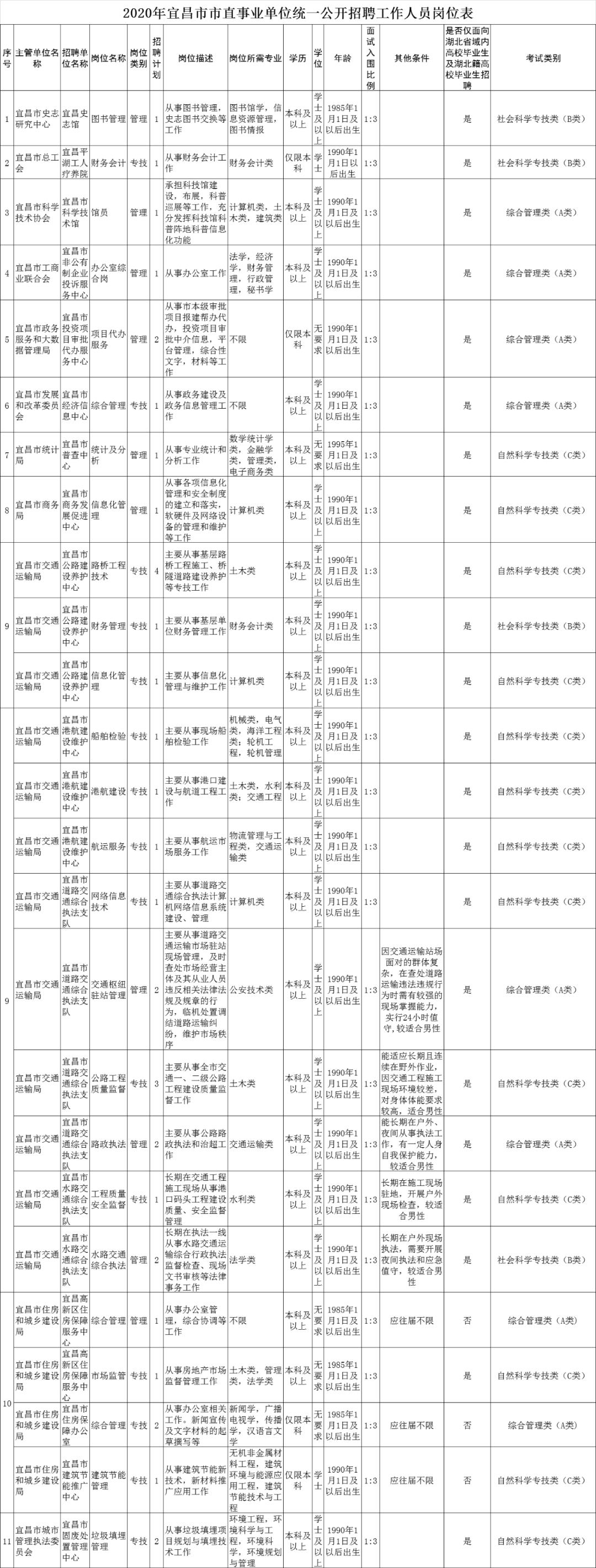 近日,宜昌市人社局发布《2020年宜昌市市直事业单位统一公开招聘工作人员公告》。宜昌市直70个事业单位147个岗位,共招聘232人!