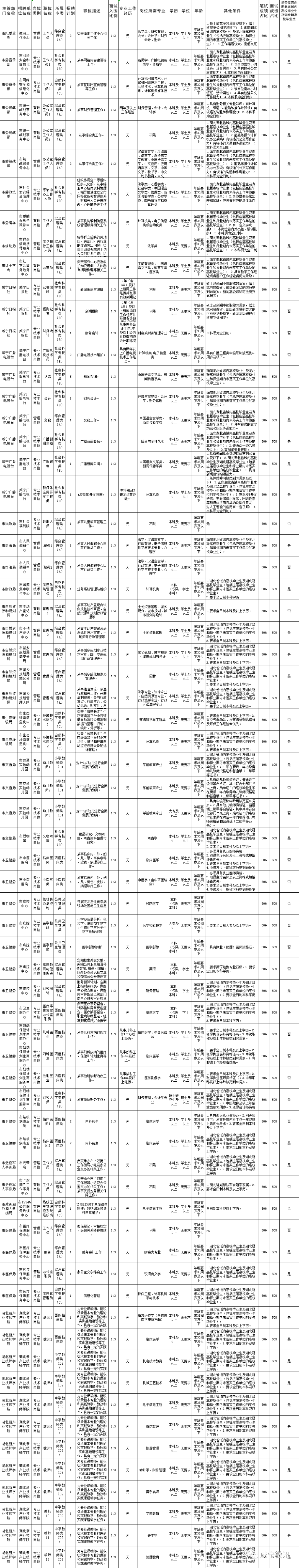 近日,湖北多地发布事业单位招聘公告