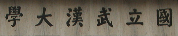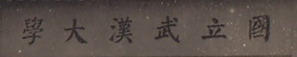 1931年在武昌街道口落成(1932年损毁)的“国立武汉大学”木质牌坊上的校名字体