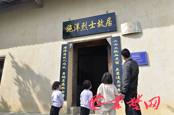 施洋烈士故居经过多次修缮后,已将施洋生平事迹的图片资料陈列上墙,施玉红也拿出收集多年的施洋生前用过的35件生活和农耕用具充实几个房间,施洋烈士故居就成了可观可瞻开展爱国主义教育的一处神圣的精神殿堂。
