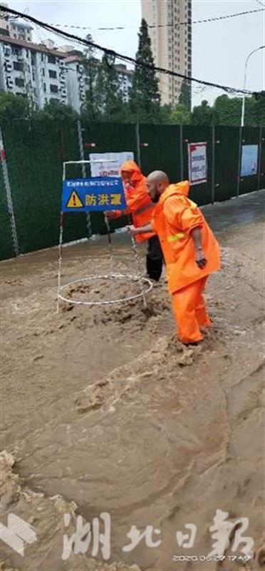 荆门市气象台分别于11时46分、14时5分、15时59分发布暴雨黄色、橙色、红色预警信号。暴雨洪水造成荆门市局部地区出现山洪地质灾害,竹皮河城区段河水猛涨,部分城区道路出现渍涝。