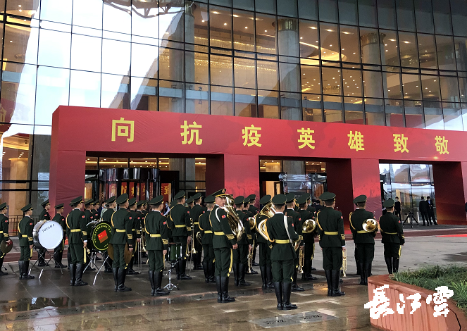 受表彰的湖北抗疫代表们在礼乐声中进场