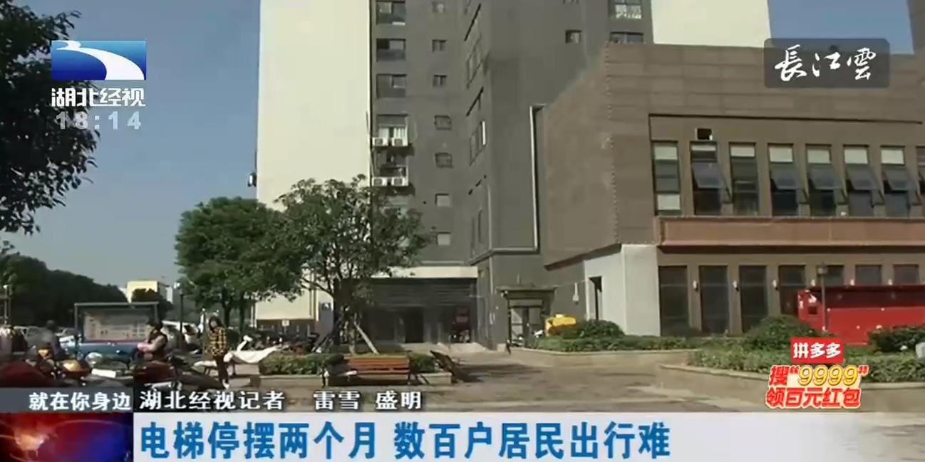 武汉市东西湖区银湖九号B栋居民:我前两天电梯坏了,我才爬楼的,因为是复式,爬一层相当于两层。