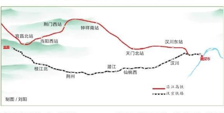 沿江高铁武汉至宜昌段,新建正线295.432公里(汉口至宜昌北运营长度303.924公里),为双线,设计时速350公里,投资估算总额522.7亿元,工期4年。报告书详细公布了线路走向和各车站规模、布置方案。