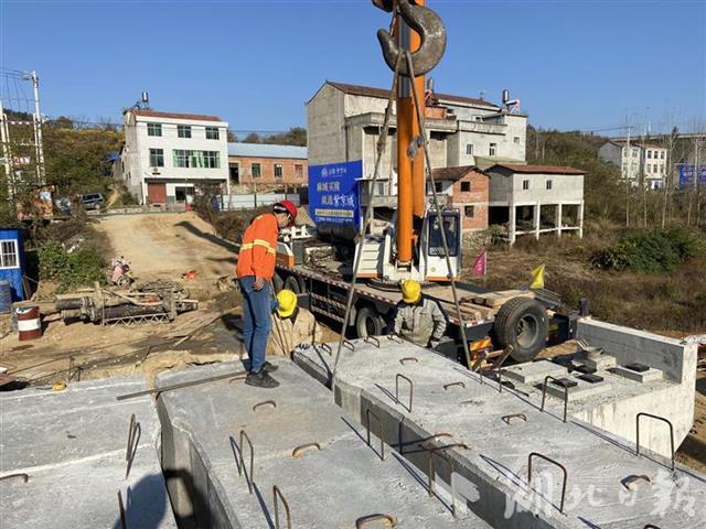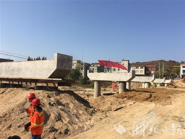 麻城黄土咀桥正在架梁。