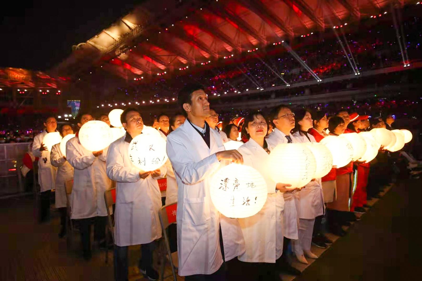 平安喜乐、万事胜意、风雨同舟、岁月静好……对于武汉最真诚的愿望被珍视地捧在手心。歌曲尾声,坐在体育场最佳位置的76位抗疫英雄同样手执灯笼起身,星星点点的白色灯光伴着灯笼上的温暖字句,成为打动电视机前观众的亮点。