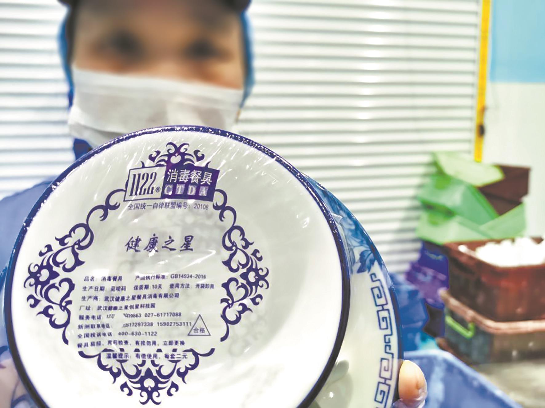 原标题:武汉启用“1122”放心碗标识 示范工厂16道工序清洗消毒餐具 在外吃饭餐具无需开水烫
