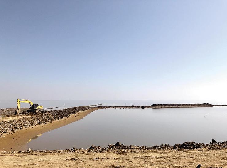 贺胜才把鱼苗转运出去。挖掘机、推土机开进渔场,将多年围湖的田埂一个个铲掉。