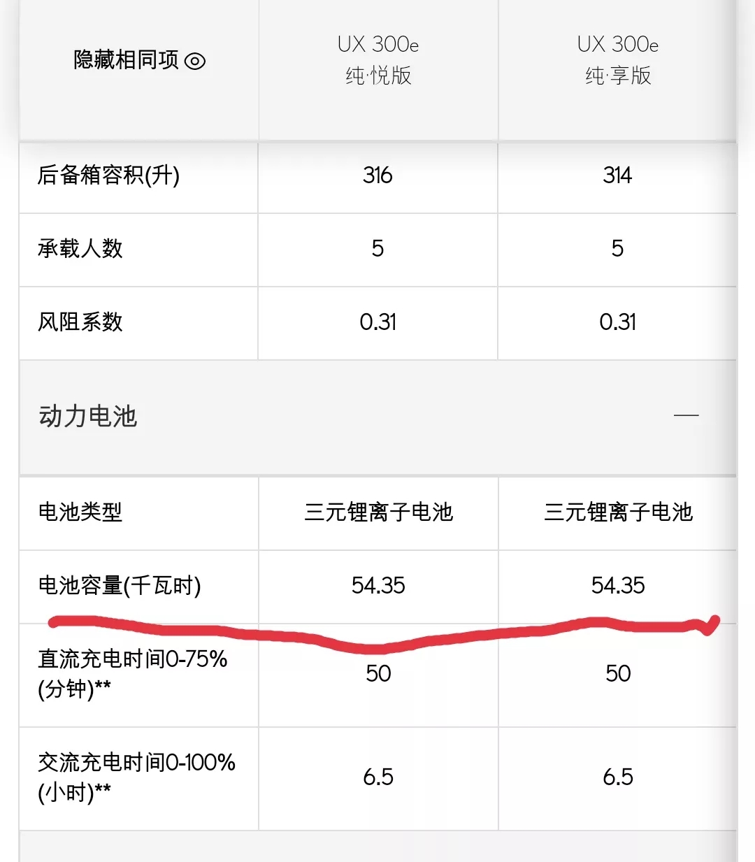 “不止是续航短一个问题,最关键是电池电量官方宣传54.35kwh,但我和很多车友的车最多只能充电到40-45kwh,电量相差竟然高达20%左右。”