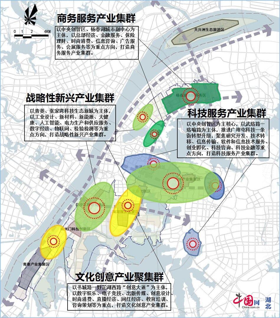 一是高质量打造武汉中央创智区,二是高水平开发杨春湖城市副中心,三是高层次建设南湖城市副中心,四是高标准建设青菱生态科技新城,五是高颜值构建天兴洲生态绿洲。