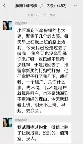 11月12日下午,有疑似遛狗老人亲属入群发言