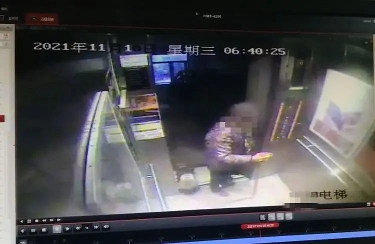 卢某林离世后,家属们来到小区物业想查看监控录像,却被告知卢某林被围堵的地方没有监控。家属从小区知情人处得知了带头围堵卢某林的遛狗老人所在楼栋,他们在物业查看了11月10日-12日的监控录像,这三日中,老人都曾带着一只泰迪犬、拿着一根粗长的棍子出门。