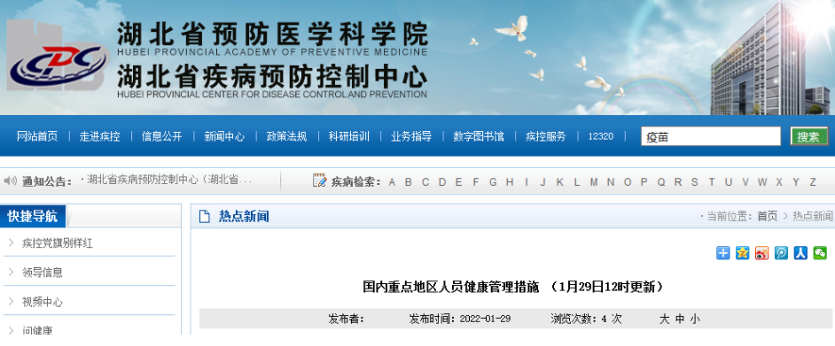 国内重点地区人员健康管理措施 (1月29日12时更新)