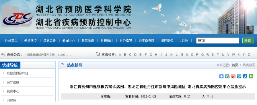 浙江省杭州市连续报告确诊病例、黑龙江省牡丹江市新增中风险地区 湖北省疾病预防控制中心紧急提示