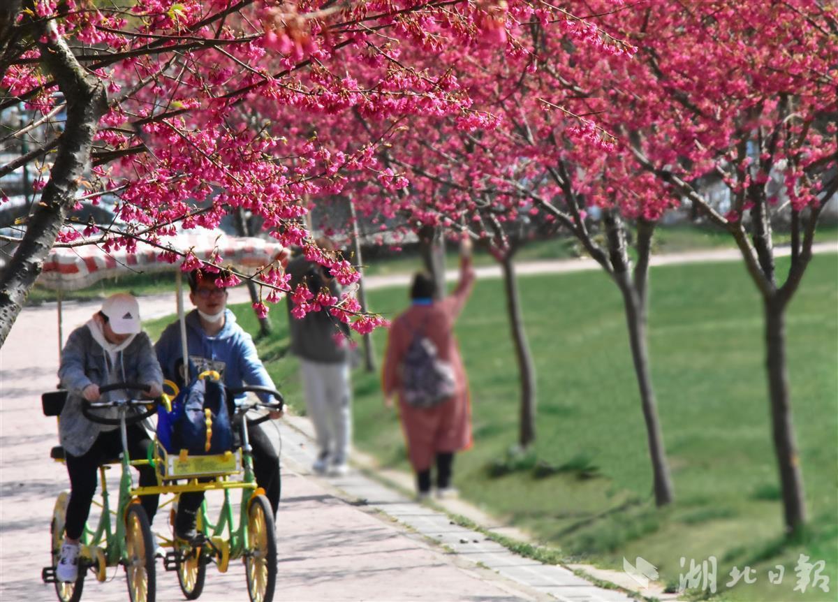 2月27日中午,家住汉口的刘先生带着家人来到武汉花博汇。景区内一片百花争艳的美好景象,让刘先生心旷神怡,“难得周末遇到好天气,出游踏青赏花,让人身心无比放松。”景区内郁金香、冰岛虞美人、紫罗兰、欧洲报春、小雏菊等数十个特色品种的花卉正在绽放,吸引众多游客在花丛中拍照留恋。另外,景区内的早樱大部分已盛开,不少游客在樱花树下漫步,感受春之气息。