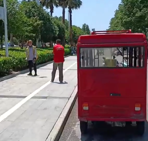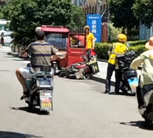 网传视频显示,一名身穿红色短袖的老人和几名外卖员在路边对峙,拍摄者称老人手持着刀,偷了外卖员的外卖。随后,老人一个跨步进到红色三轮车内,骑车逃离了现场,一外卖员试图阻拦但没有成功。