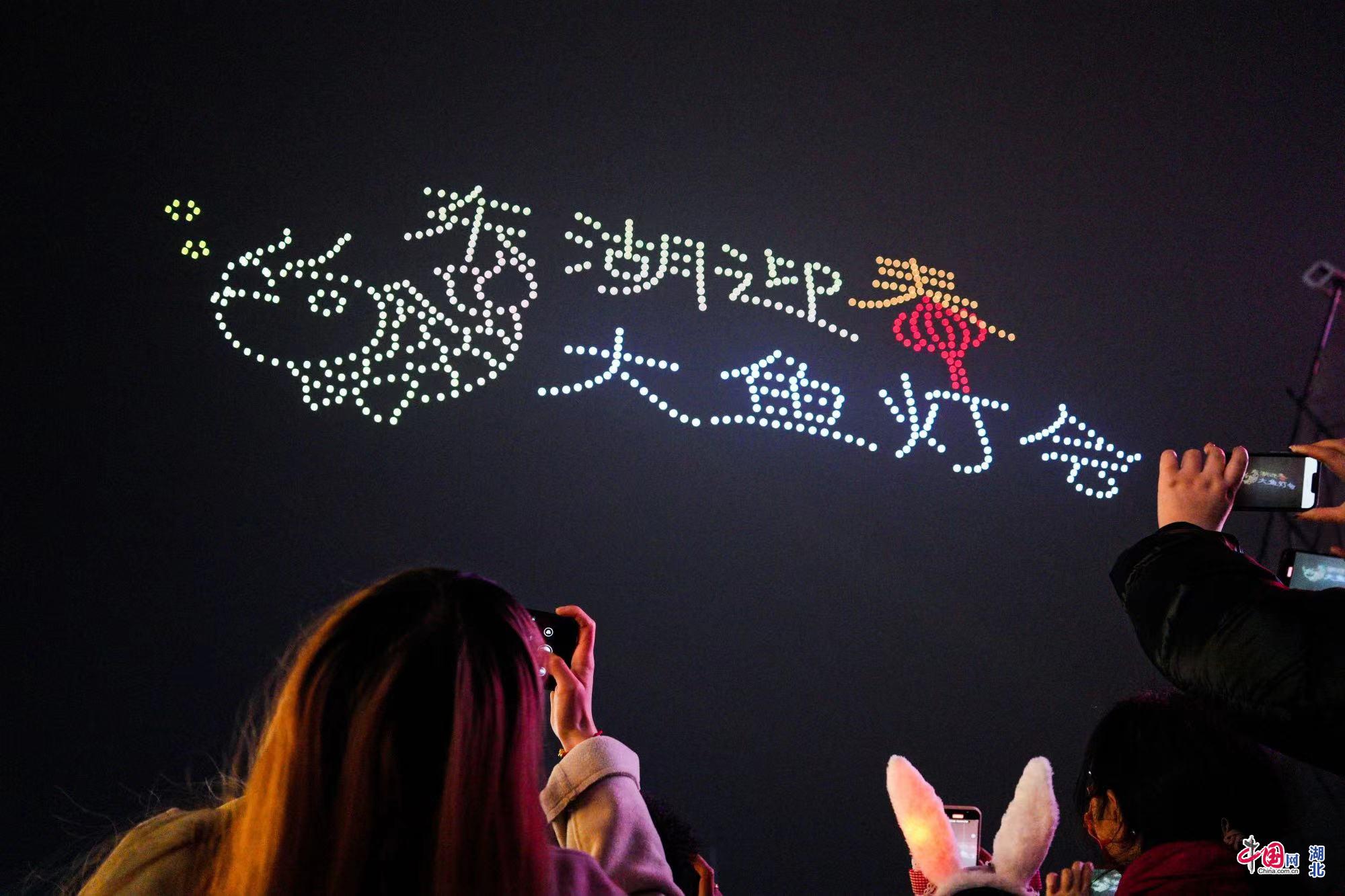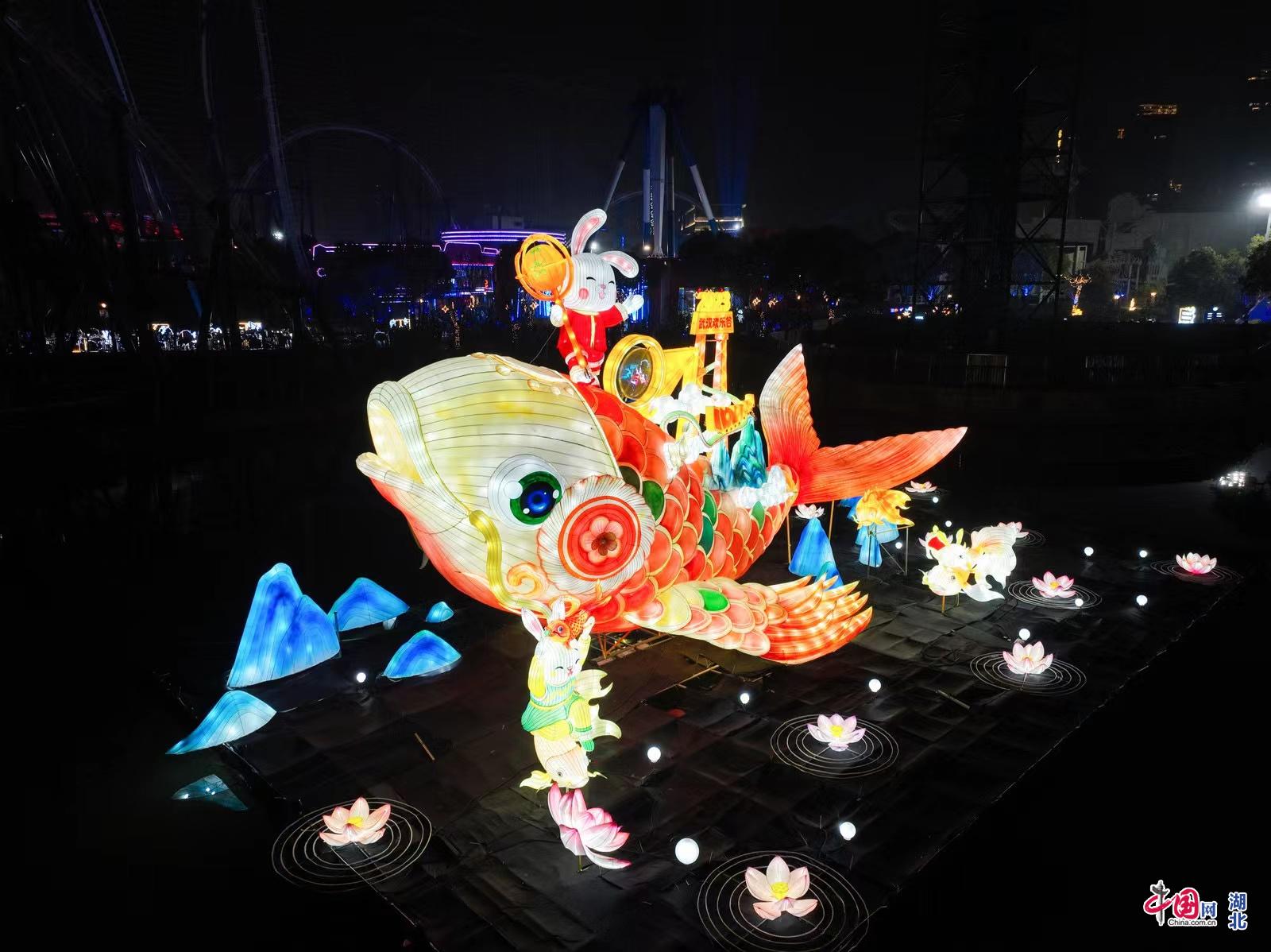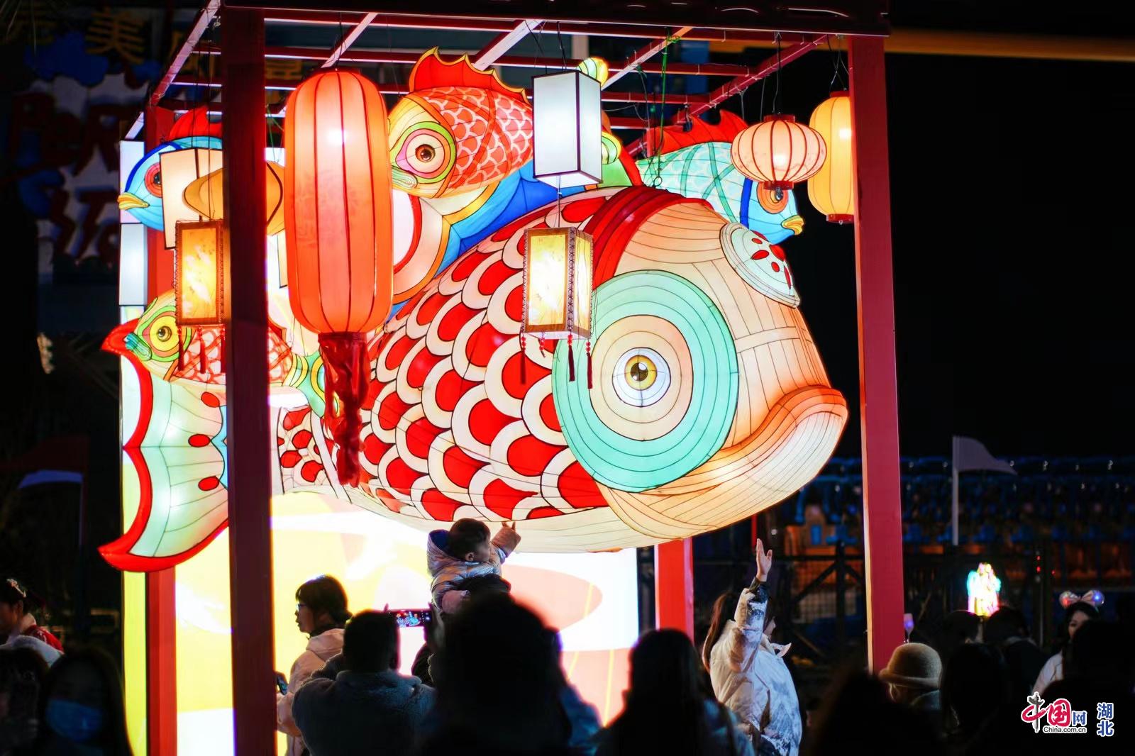 中国网武汉2月6日讯 猜灯谜、赏花灯。农历正月十五恰逢周日,当晚,数万市民来到武汉欢乐谷逛东湖迎春大鱼灯会。元宵节赏新灯,园区“荧树游船”灯组换上元宵新装,更打造百组国潮灯谜组成的灯谜墙,让游客积极互动参与猜谜。