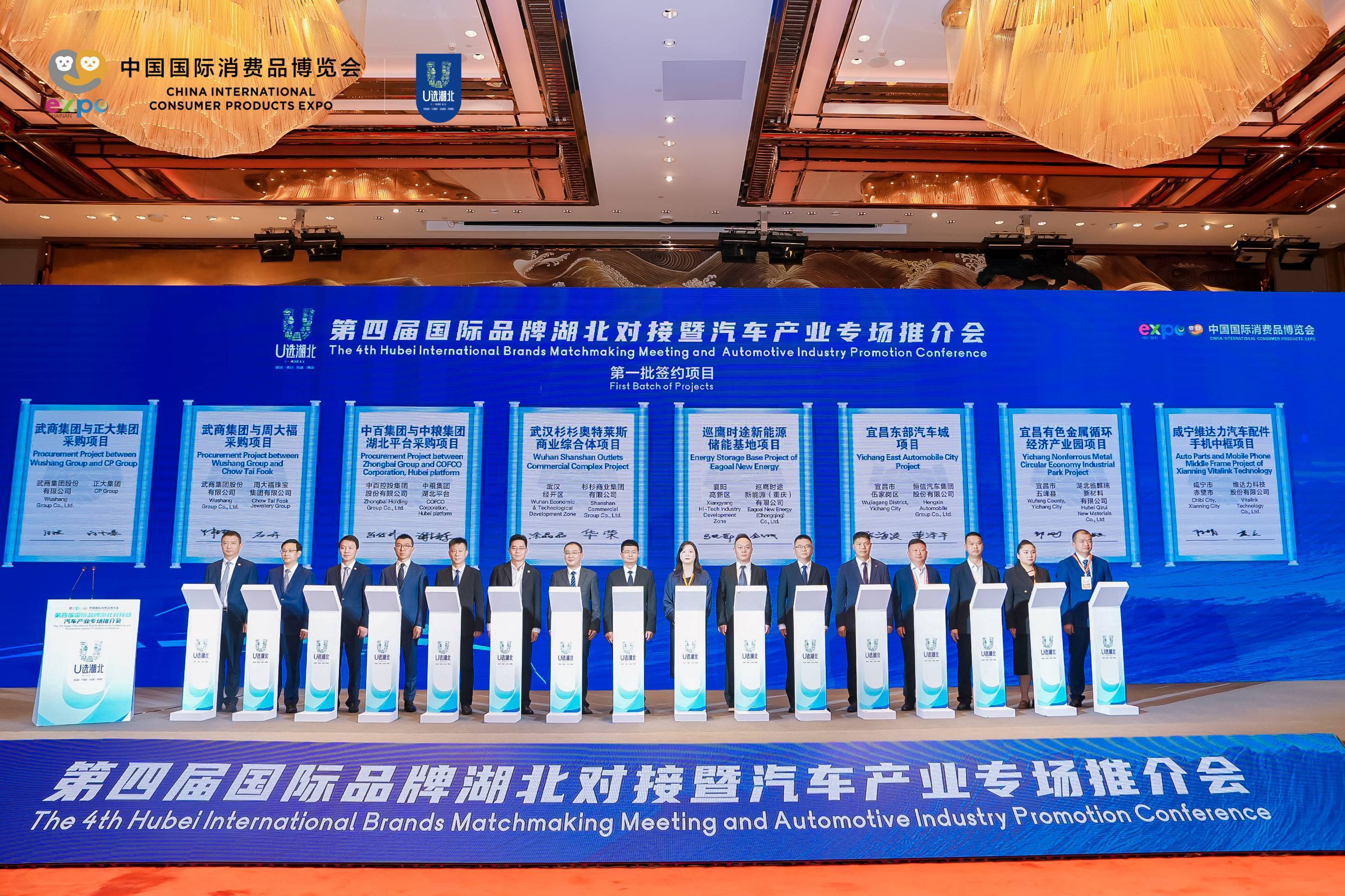 4月14日上午,第四届消博会期间,国际品牌湖北对接暨汽车产业专场推介会在海口举办,湖北揽下24个签约项目,总金额311亿元。