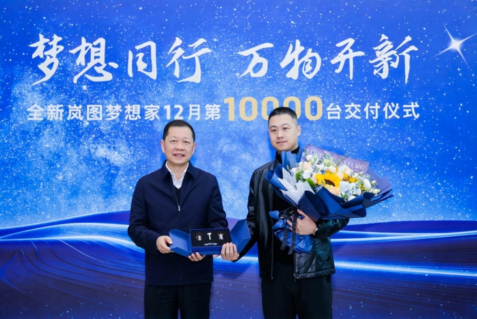 2024年12月31日,全新岚图梦想家12月第10000台交付仪式在武汉举行,东风汽车集团有限公司董事长、党委书记杨青将全新岚图梦想家的钥匙交到岚图车主卢松手中。全新岚图梦想家连续问鼎10月、11月全国新能源MPV、全国高端新能源MPV销量冠军,并在12月单月交付过万,获得市场销量与用户口碑双丰收。