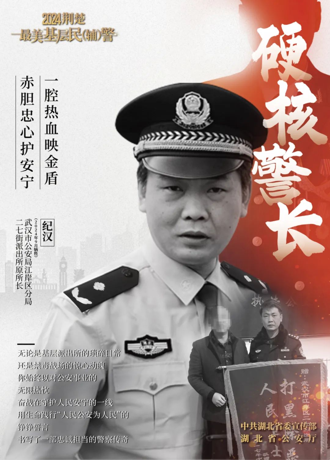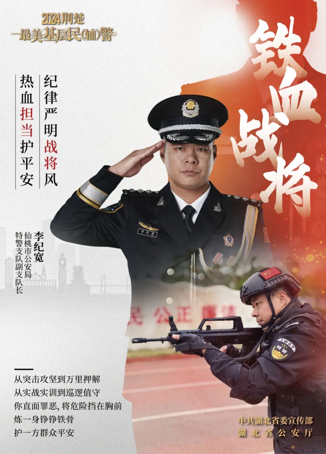 据悉,湖北各地公安机关经资格审批、党委研究、公示公告、报同级党委宣传部门同意等程序,共推选21位民警、16位辅警作为候选人。经前期立体宣传,湖北省公安厅征求督查、信访、纪检部门意见后,组织省委宣传部、网信办、政法委有关负责人和省公安厅直属相关警种部门、党风政风警风监督员、央省主流新闻媒体记者等多轮评审,报请省委宣传部、省公安厅确定最终名单。纪汉(因公牺牲)、王秀峰、杨焱鑫、魏鹏、简翟(女)、涂敏(女)、向朝晖、李纪宽、梁柯、李欣10位民警获评2024“荆楚最美基层民警”,李轶(女)、查胜谱、胡涛、王冠、饶继虎5位辅警获评2024“荆楚最美基层辅警”。