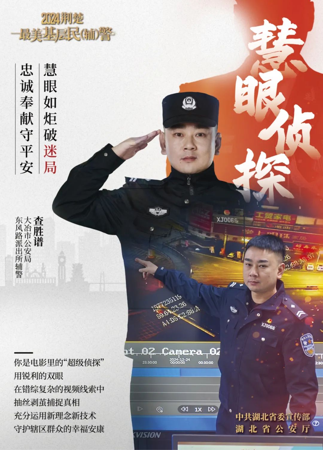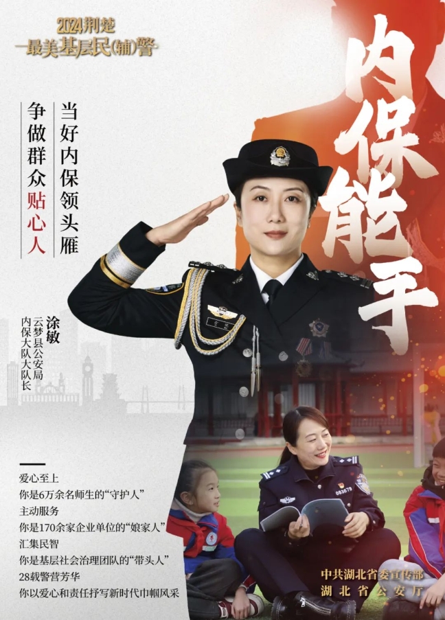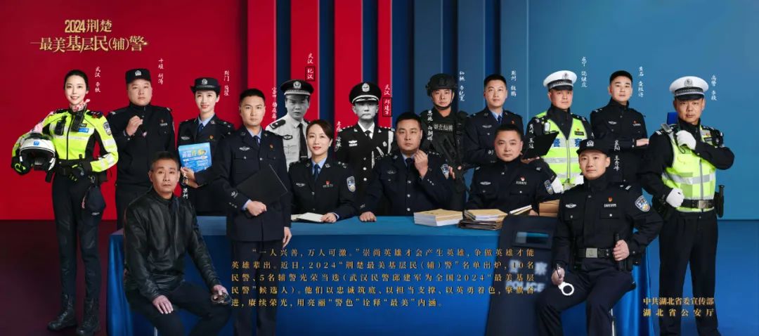 为充分发挥先进典型的示范、带动、引领和辐射作用,激励广大民警辅警崇尚“最美”、学习“最美”、争当“最美”,按照中央宣传部、公安部要求,1月7日,湖北省委宣传部联合省公安厅发布2024“荆楚最美基层民(辅)警”名单,10位民警获评2024“荆楚最美基层民警”,5位辅警获评2024“荆楚最美基层辅警”。