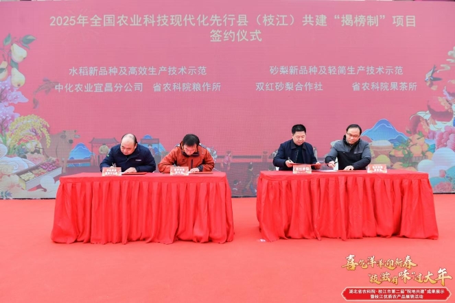 为解决产业实际问题,加快先进适用农业技术成果落地见效,省农科院相关科研团队与枝江市相关企业(主体)举行先行县“揭榜制”项目签约仪式。省农科院党委书记张世伟表示,将充分发挥省农科院科技优势,聚焦枝江现代农业高质量发展需求,着力实施“揭榜”项目,解决产业难题,培养实用人才,壮大龙头企业,创响区域品牌,为枝江农业高质量发展提供强有力科技支撑,为奋力谱写中国式现代化湖北篇章打造枝江样板作出农科贡献。