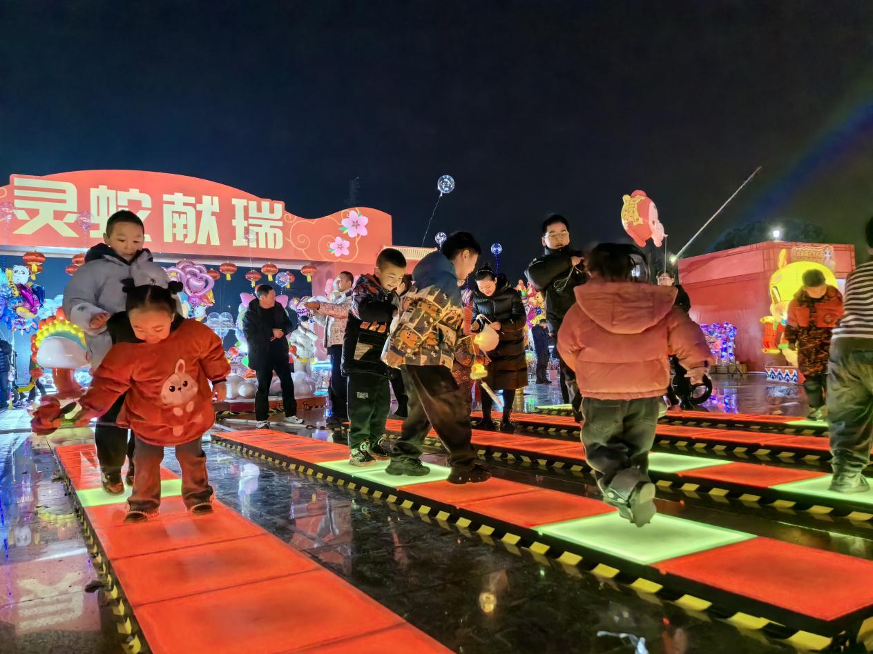 两天的活动精彩纷呈,在灯谜区,400条七彩灯谜条吸引部分市民驻足讨论和参与,灯谜涵盖字谜、俗语、诗词等。市民可以在现场穿汉服猜灯谜赏花灯、体验民俗活动,感受国潮新风。4组主题花灯位于广场两侧及四周,舞台两侧的树上挂有元宵彩灯,广场中心还设有儿童游乐灯区,今年首次引进的踩踏炫灯,吸引了不少市民提前来打卡。当晚的文艺演出,将此次元宵灯会推向高潮。