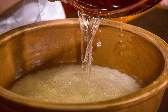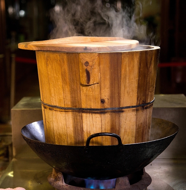 米酒的选料、制作都十分考究,通常用朱湖糯米为主要原料,先将其过清水浸泡、洗净、沥干后上锅蒸熟。