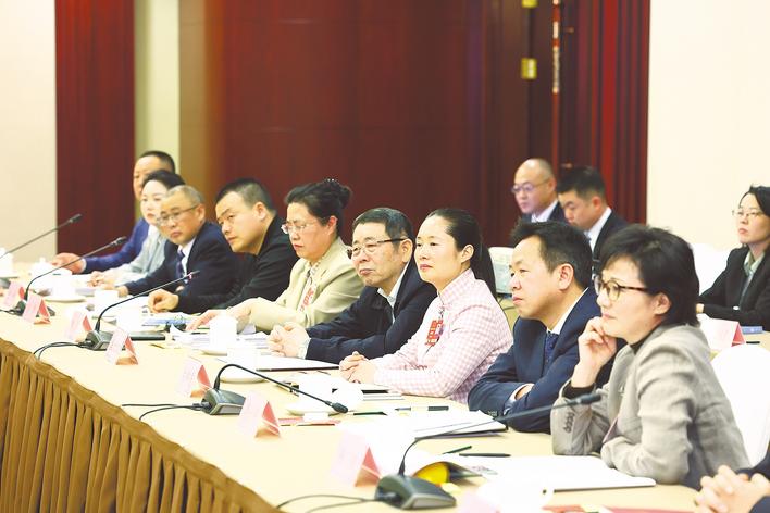 3月6日下午,十四届全国人大三次会议湖北代表团举行小组会议,审查计划报告和草案、预算报告和草案。 (湖北日报全媒记者李溪张朋摄)