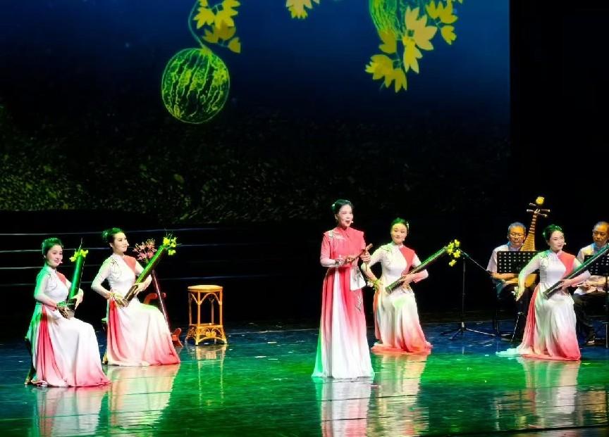 《瓜乡笑瓜》是以省级非遗项目“宜城兰花筒”为表现形式的曲艺作品。作为近年来少有的优秀曲艺作品,《瓜乡笑瓜》情节丰富、内容充实,为非遗项目“宜城兰花筒”注入了新的时代内涵。作品以小见大,歌颂了宜城农村在脱贫攻坚、全面建成小康社会、乡村振兴中所发生的可喜变化。