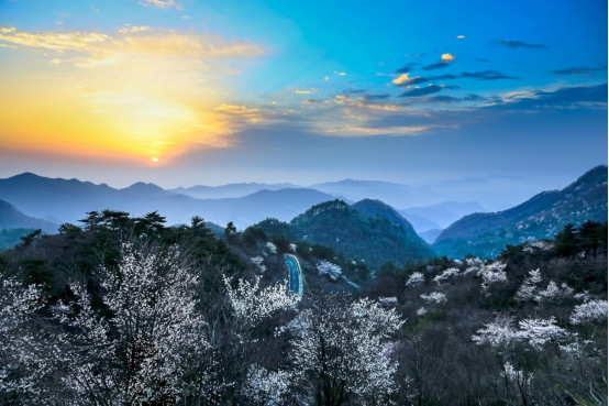 春正暖,花正开,随州大洪山的野樱迎来最佳观赏期。在大洪山风景名胜区,从山脚到山顶大面积的野樱花已全面盛开。放眼望去,漫山遍野的野樱花犹如舞动的白色精灵,亦如漂浮在山间的无数云朵。景区蜿蜒盘旋的旅游公路,似是雪白花从中的条条玉带,甚是壮观。大洪山属野生山樱群落聚集区,这里的野樱花品种不一、颜色各异,常年与湖光山色相依,和蓝天碧水为伴,美得无拘无束、热烈奔放。游客绕数十里循环山路,登临千米高峰,才可一览风姿。