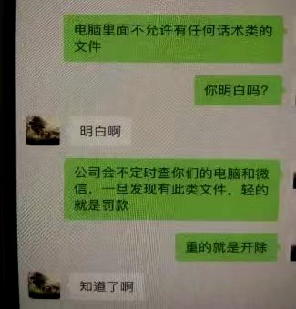“药店和中医门诊对于所有的业务员和顾客的聊天记录,都会保存在企业微信云平台,每周都会有主管进行审查,如果发现了使用话术本或虚假、夸大宣传等行为,公司都会对业务员进行处罚。每个员工都签订了《员工确认书》,知道严禁虚假宣传和夸大产品疗效,违规会被处罚或被解聘的。”王明说。
